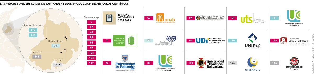 Dos Instituciones de Educación Superior (IES) de Santander están entre los primeros 40 lugares del Ranking U-Sapiens 2023-1, como las mejores universidades colombianas según indicadores de investigación.