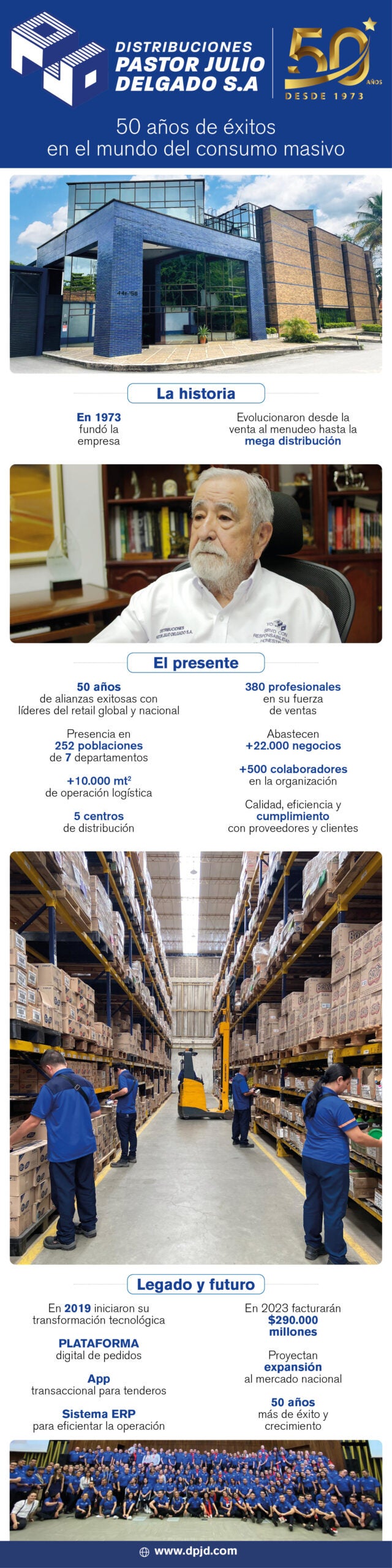 En sus 50 años, Distribuciones Pastor Julio Delgado demuestra su capacidad para adaptarse a los cambios del mercado, innovar y aumentar su distribución, ratificando su liderazgo, proyectando su incursión en el mercado nacional, capacitando a sus colaboradores e implementando avances tecnológicos, en pos de la calidad, eficiencia y puntualidad en sus compromisos con sus proveedores y clientes.
