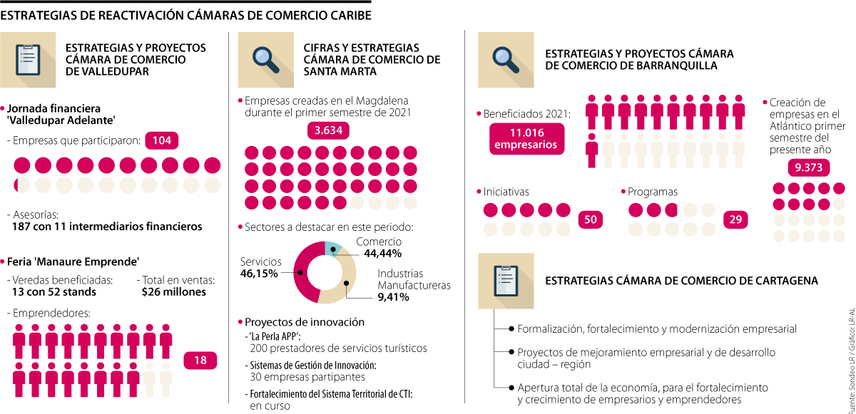 Las cámaras de comercio del Caribe colombiano han demostrado una participación eficaz en los esfuerzos para la reactivación económica del sector empresarial de la región, la creación de fondos, alivios, préstamos, capacitaciones, convenios, proyectos, entre otras ayudas, son algunas de las estrategias que se adelantan por parte de estas entidades para solventar la crisis ocasionada por el covid-19 y que afectó en gran manera a los empresarios y empresas del país.