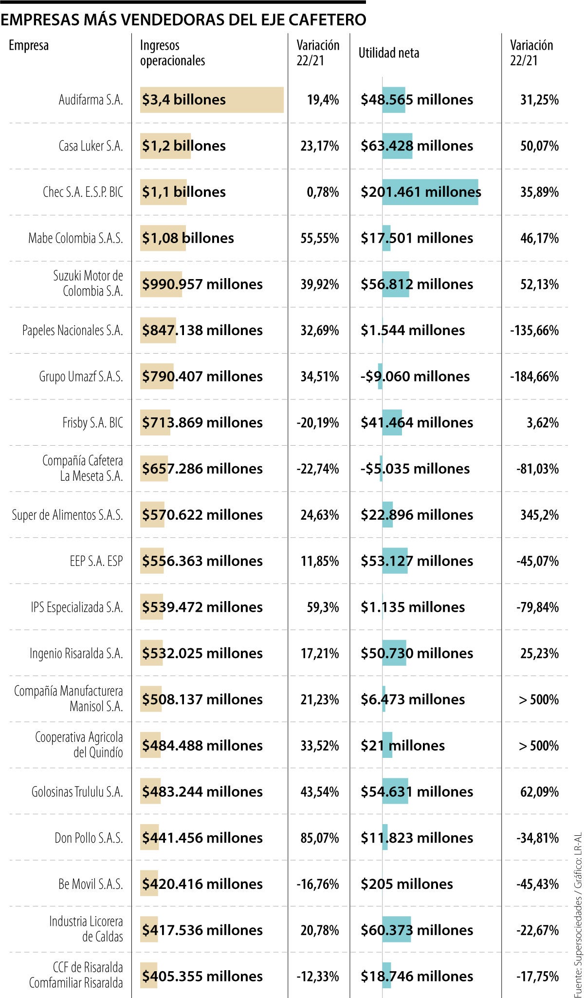 Basados en el informe de la Supersociedades, LR recopila las empresas que registraron los mayores ingresos en la región en 2022