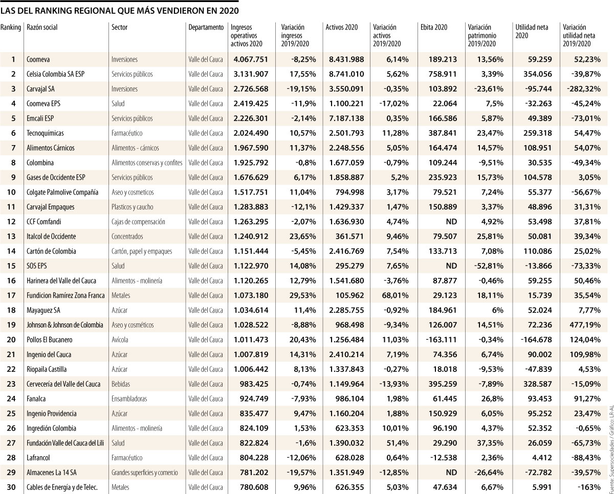 Este año, la clasificación incluyó a 563 compañías del Valle y 70 del Cauca que en total lograron utilidades por $4,8 billones en 2020.