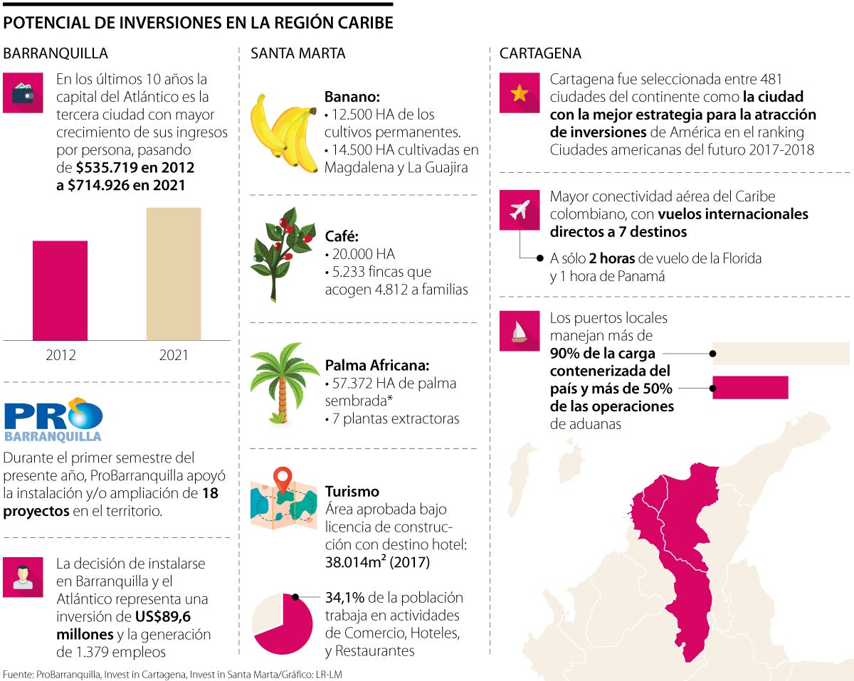Con proyectos a futuro como el tren regional y las exploraciones para la construcción de plantas de energía solar y eólica, la Costa Caribe se posiciona como uno de los destinos más interesantes para invertir en 2022 y en los próximos años. Su ubicación geográfica, la conectividad y su cercanía con grandes puertos y aeropuertos ha facilitado el desarrollo de esta Región, en la que no solo se ha potenciado el agro y la ganadería, sino también el turismo, la industria tech y el offshoring.