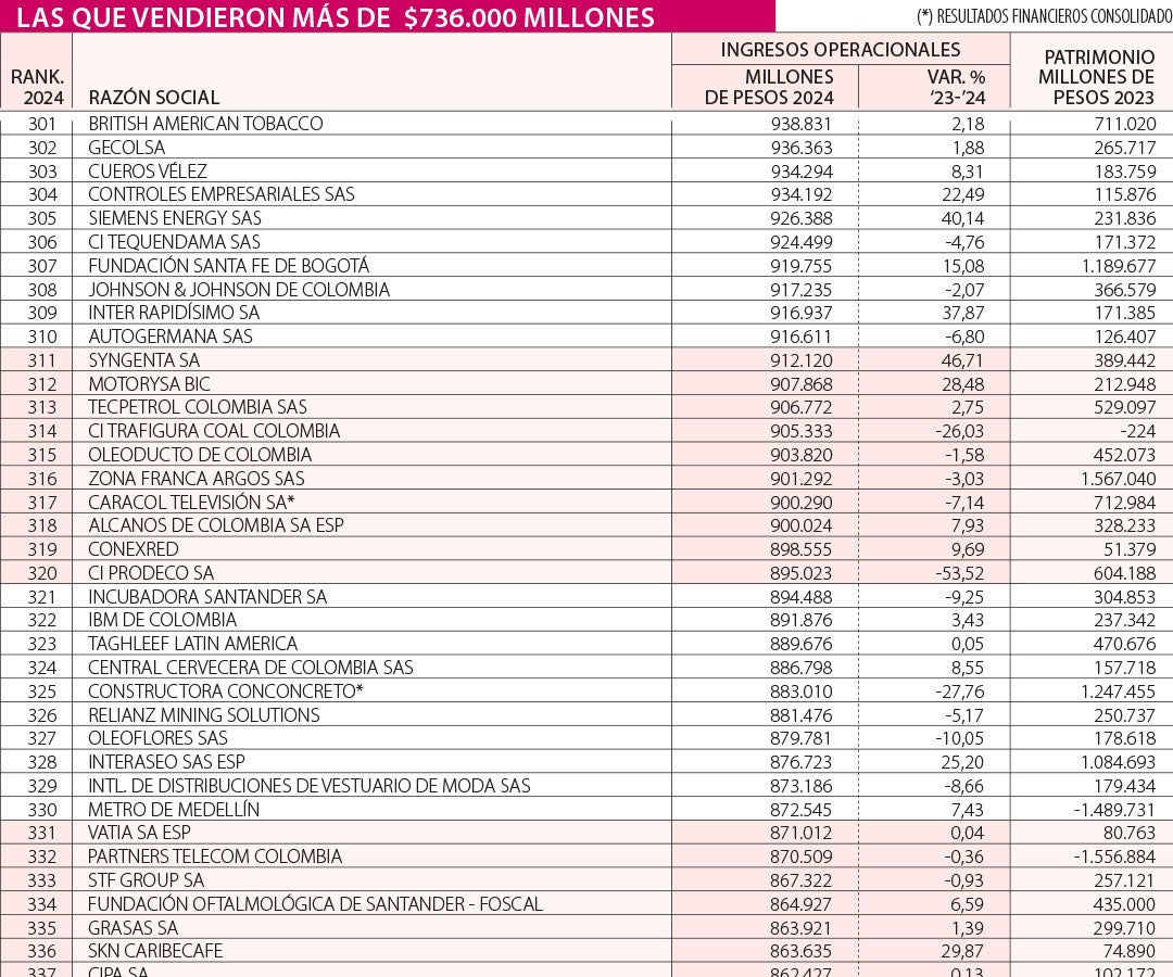 Grupo Éxito se mantuvo como la de mayores ingresos, alcanzando $21,88 billones en 2024, un incremento de 3,59% frente a 2023