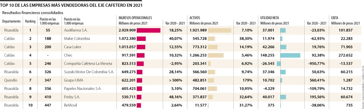 Tres empresas del eje cafetero superaron el billón en sus ingresos durante 2021, hecho que las posicionó como las de más ingresos