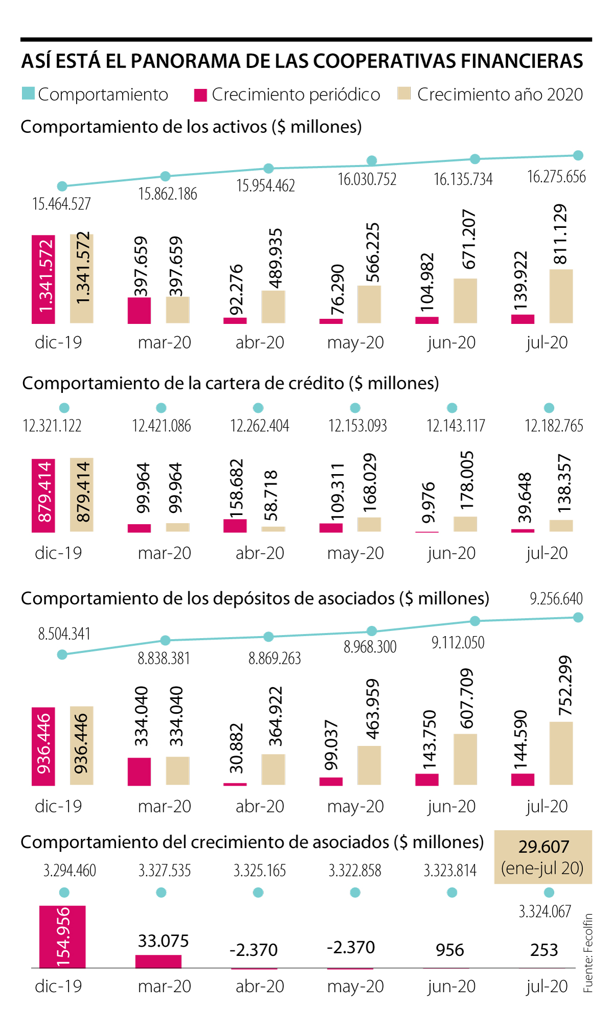 Según Confecoop, el monto total de alivios que se otorgaron en la primera parte de la pandemia supera los $8,5 billones frente a la cartera de crédito. Por otro lado, las cooperativas financieras colocaron cerca de $300.000 millones en alivios que estuvieron dirigidos a 266.500 deudores y fueron reglamentados por las circulares 11 y 17 de la Superintendencia de Economía Solidaria.