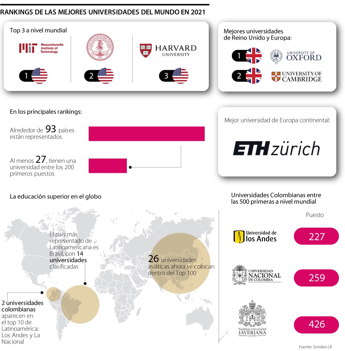 No obstante, aunque en diferente orden, los rankings internacionales tales como QS World University Rankings, Webometrics y el Times Higher Education, coinciden en que el Instituto Tecnológico de Massachusetts MIT, la Universidad de Stanford y la Universidad de Harvard continuan siendo los líderes en materia de educación a nivel mundial durante este 2021.