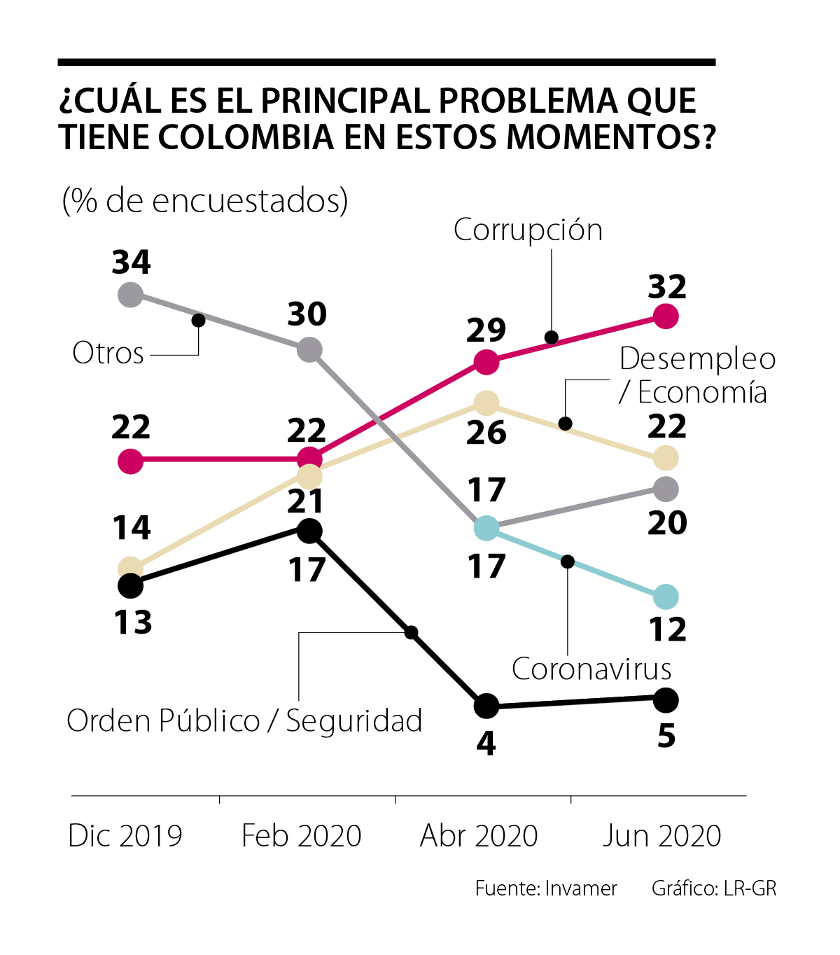 Estos sentimientos dentro de la comunidad son alimentados porque se considera que la corrupción es el principal mal del país, para 32% de los ciudadanos, mientras que el desempleo, y la economía, son el peor problema para un poco más de dos de cada 10 colombianos.