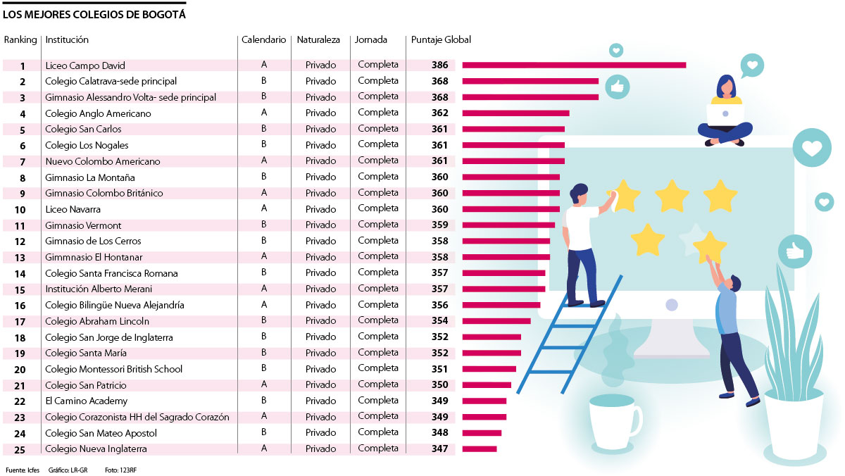 En el listado de las 25 mejores instituciones de la capital del país, 14 colegios se manejan bajo calendario B y destaca que no hay ninguna pública