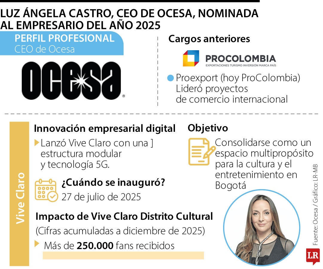 El liderazgo de Luz Ángela Castro al frente de Ocesa la ubica entre los ejecutivos nominados al Empresario del Año, tras un 2025 marcado por la consolidación de Vive Claro Distrito Cultural y por el impacto económico que generó el entretenimiento en vivo en el país.