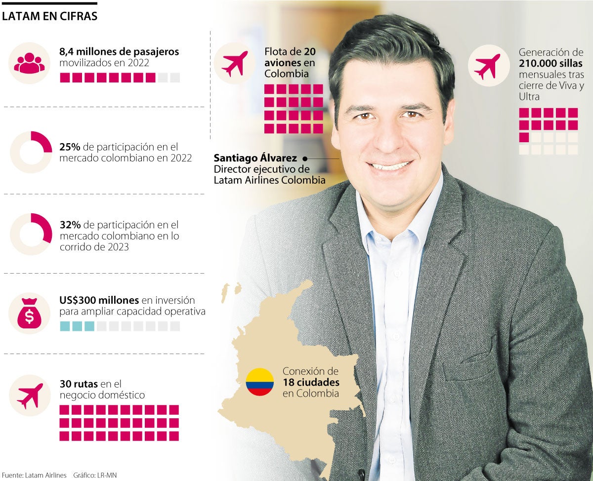 La salida del mercado de las aerolíneas de Viva y Ultra generó un nuevo contexto para el mercado aéreo colombiano, en el que las grandes aerolíneas como Avianca y Latam tienen un papel protagónico. Esta última, está trabajando con fuerza en el desarrollo y ampliación de su capacidad operativa, según lo explicó Santiago Álvarez, director ejecutivo de Latam Airlines Colombia.