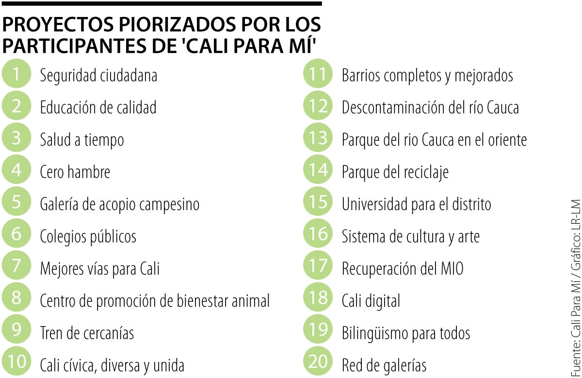 En la iniciativa ‘Cali para mí’ participaron 17.831 ciudadanos, quienes votaron por los proyectos que consideran se deben priorizar y desarrollar en el mediano y largo plazo en Cali.