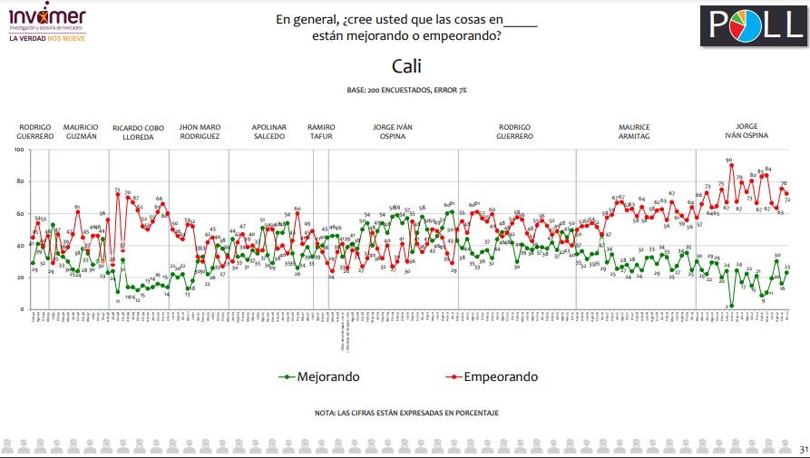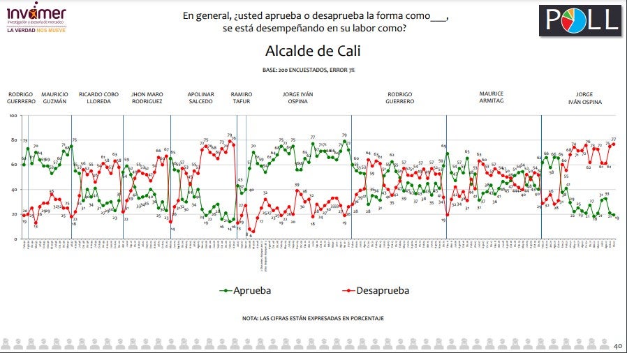 La más reciente entrega del informe Invamer Poll, presentado la semana pasada, reveló los niveles de aprobación y desaprobación de la gestión del alcalde de Cali, Jorge Iván Ospina.
