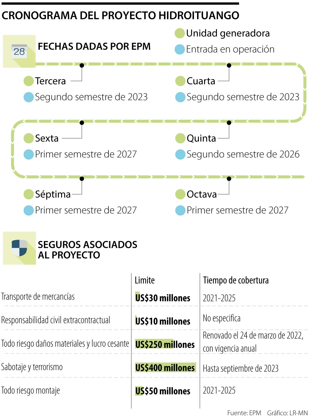 Pese al retraso de la construcción, EPM asegura que cuenta con casi todos los seguros. El transporte de mercancías, con un límite de US$30 millones, y la responsabilidad civil extracontractual por US$10 millones son algunas de las coberturas.