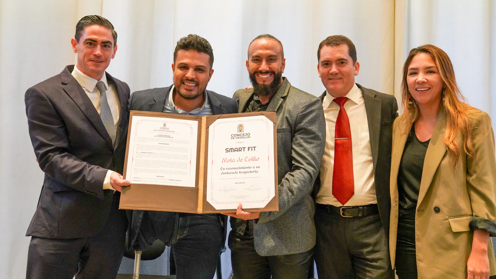La cadena de gimnasios y entrenamiento Smart Fit recibió el reconocimiento del Concejo de Medellín con la Orden al Mérito Don Juan del Corral, en Nota de Estilo. Según la entidad, destaca de la empresa “su importante aporte en la construcción de una ciudad más saludable a través de la práctica del deporte y la actividad física”. El reconocimiento fue recibido por David Raya, CEO de Smart Fit Colombia.