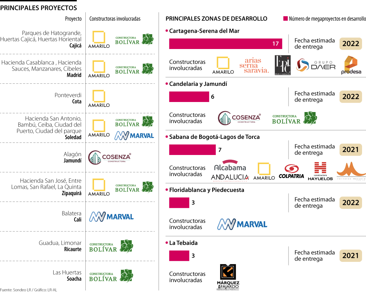 Ciudadelas como Lagos de Torca, donde participan varias constructoras; Ciudad del Valle en Candelaria, Valle del Cauca de Constructora Bolívar; Villa del Río en Jamundí de Constructora Consenza; o Ibera-Castilla de la constructora Marval, forman parte del catálogo de esta nueva tendencia hacia el desarrollo de megaproyectos de vivienda constituidos como nuevas ciudades en las periferias.