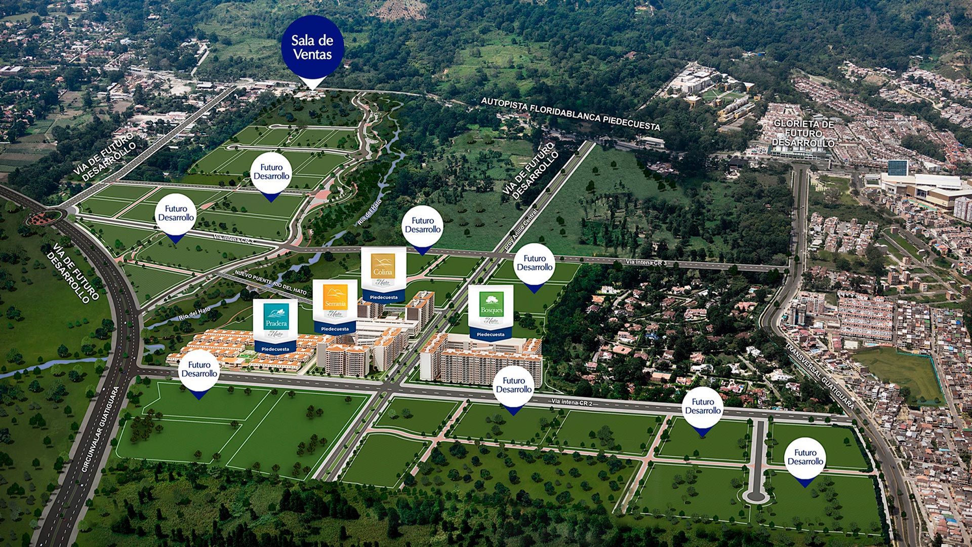 En Bucaramanga y su área metropolitana, se están construyendo ciudadelas en Floridablanca y Piedecuesta. La constructora Marval está desarrollando cuatro megaproyectos. Uno es El Country, en Floridablanca con 4.200 viviendas. El segundo, en Piedecuesta, es Río del Hato, que contará con 8.400 viviendas, y Tierra Buena tendrá 3.550 unidades de estrato tres. Al sur de Piedecuesta, en la zona llamada Barro Blanco, se están construyendo 1.800 viviendas de interés social.