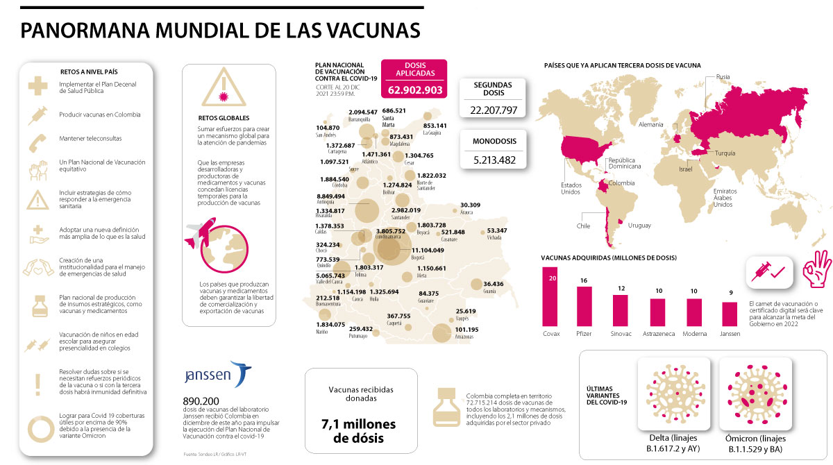 Además, como segundo reto, “para 2022 es clave que el Minsalud refuerce la disponibilidad de vacunas frente a covid-19, incluyendo la respuesta a nuevas variantes. Acá es importante no descuidar, cómo ha venido sucediendo con el programa ampliado de inmunizaciones tradicional, que incluye la prevención de 25 enfermedades o eventos. Es necesario volver la vacunación regular contra el covid-19 incorporándola al PAI”, afirmó Hernández.