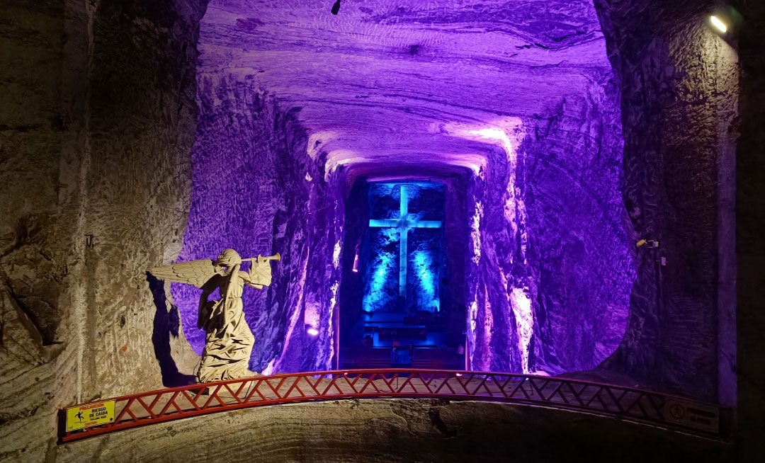 Zipaquirá está ubicado a cinco kilómetros del norte de Bogotá. Durante la Semana Santa podrá observar las procesiones que se realizan en este municipio que tiene como principal atracción la Catedral de Sal, también conocida como la primera maravilla de Colombia. Esta mina es la mayor reserva de roca sal en el mundo, donde podrá observar las piedras talladas y los túneles de estaciones del viacrucis. El lugar está acompañado de luces azules, blancas y moradas. El recorrido lo puede complementar visitando la Catedral Diocesana, el Centro Histórico y la Capilla del Cedro.