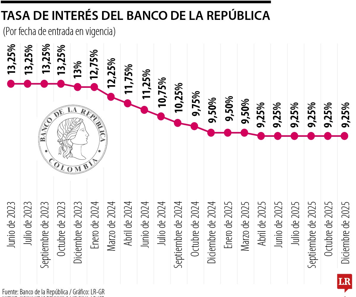 Sin embargo, los tipos se mantuvieron inalterados hasta abril de 2025, cuando el Emisor los recortó en 25 puntos básicos y dejarlos en 9,25%. Desde esa fecha, no se han vuelto a tocar. La política cautelosa del Banco de la República fue la protagonista en cada decisión sobre la tasa de interés durante el año, y así se confirmó en la última reunión del año cuando la dejaron inalterada. Pero la proyección cambia para 2026. Corficolombiana alertó que las tasas se aumentarán el año siguiente en al menos 50 puntos básicos.
