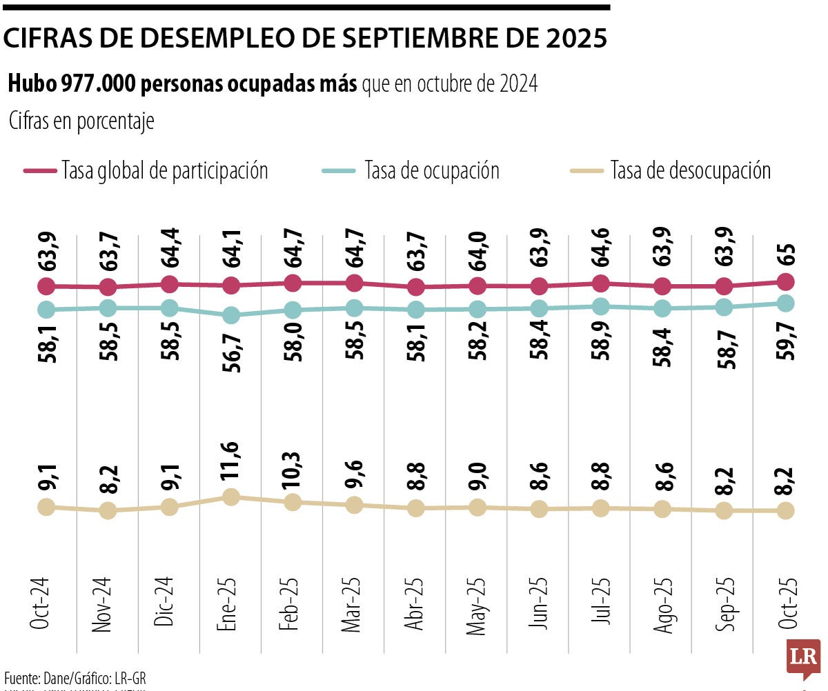 Si se evalúan los datos de desempleo durante todo 2025, se aprecia un comportamiento positivo. Aunque el año comenzó con una tasa de desocupación de 11,6%, el dato se fue moderando con el pasar de los meses y se mantuvo en cifras de un solo dígito. Hasta el último dato condensado por el Dane, la tasa de desempleo se ubicó en 8,2%, la cifra más baja desde 2017, uno de los logros que se atribuye el Gobierno.