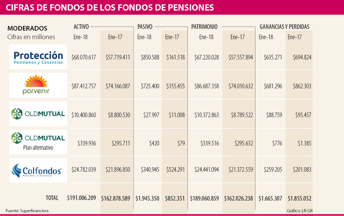 El segundo multifondo que más aumentó su rentabilidad fue el total del portafolio moderado, que subió 71,98% frente a 2016. En este segmento, la que más creció fue Old Mutual (plan alternativo), que aumentó sus ganancias en 83,3%.
