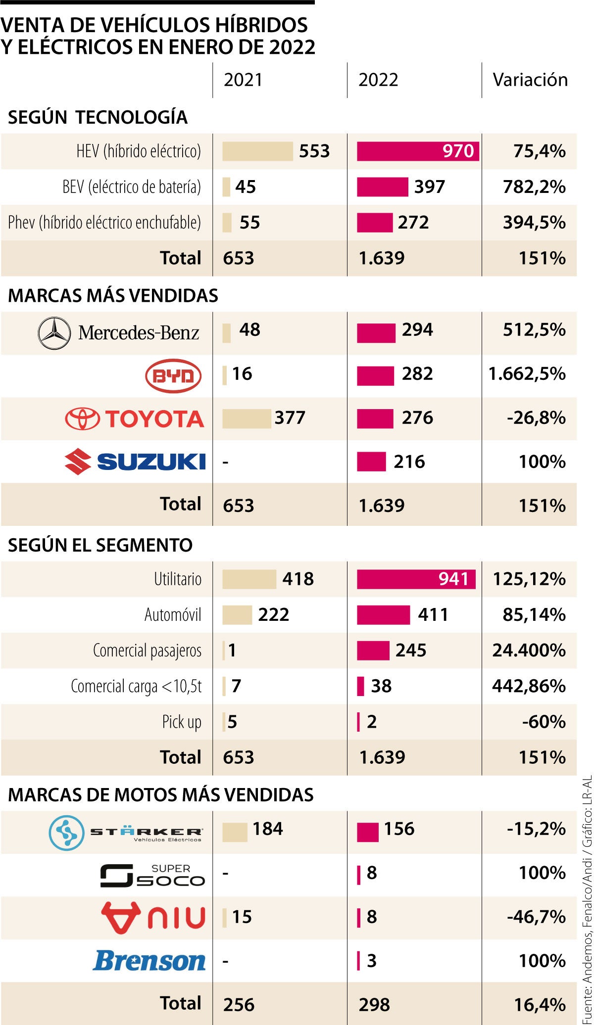 En el primer mes de 2022 la venta de vehículos eléctricos e híbridos representó más de un tercio del total comercializado en 2019