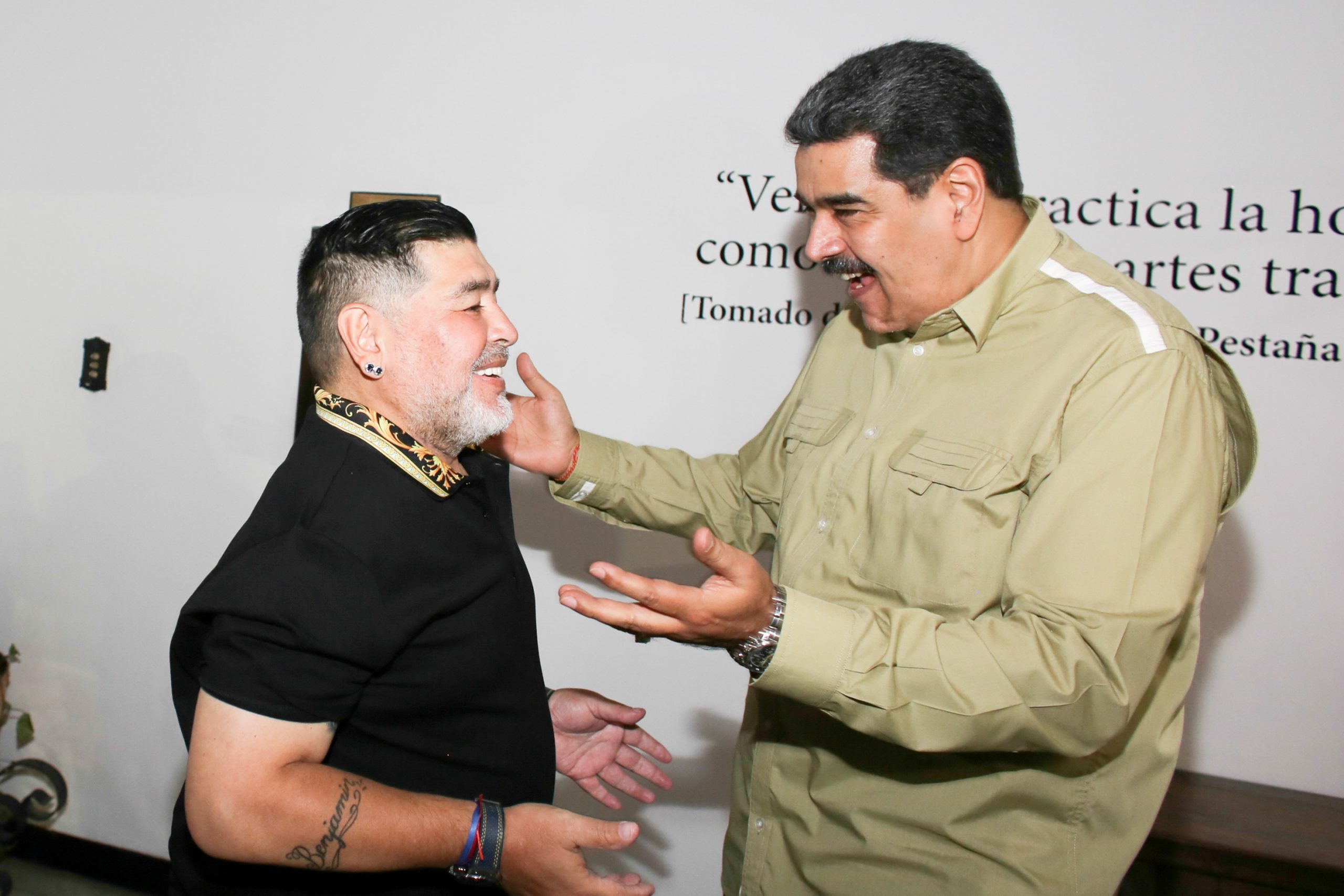 Y después de la muerte de Chávez, siguió yendo a Venezuela. En la siguiente imagen (proporcionada a Reuters por un tercero) se ve con Nicolás Maduro, quien lo recibió en Caracas el 21 de enero de 2020 en el Palacio de Miraflores.