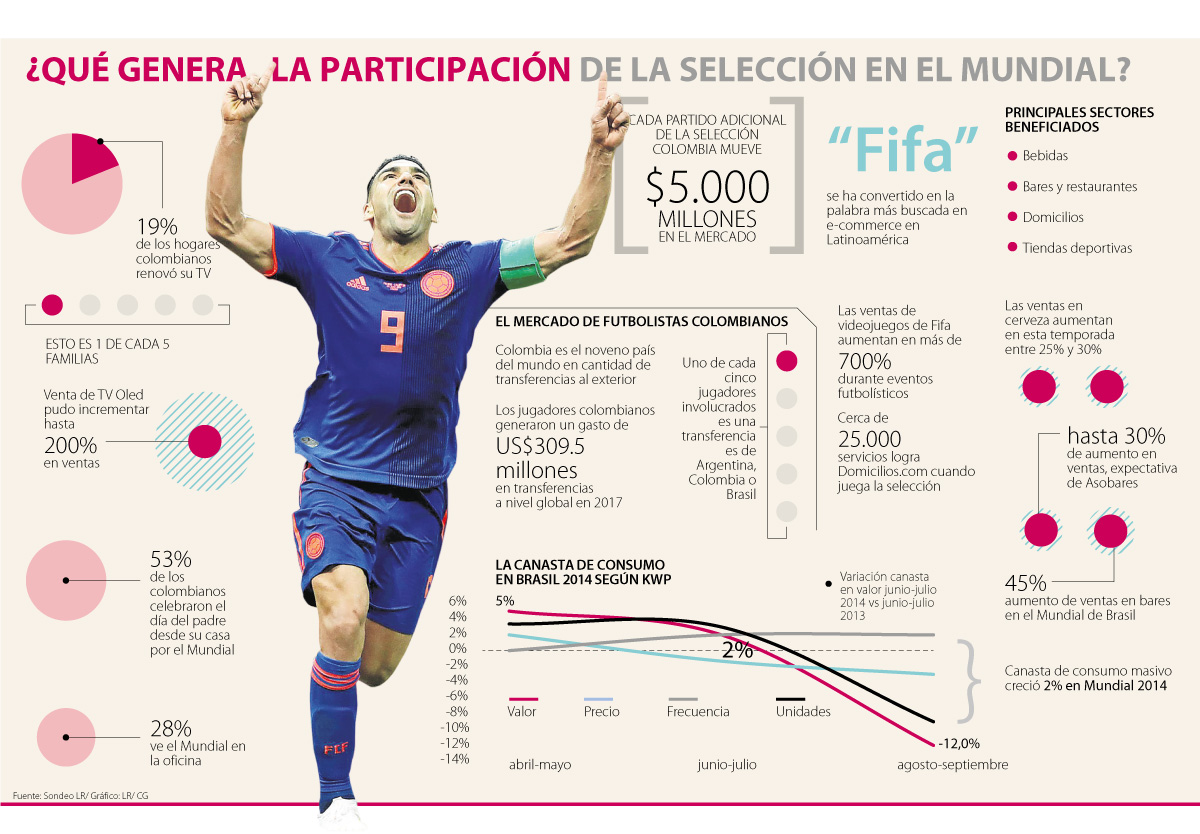 Sin embargo, no solamente gana el comercio nacional. Aunque el fútbol en Colombia aporta menos de 0,2% del PIB del país, el mercado de jugadores se puede ver impactado por el desempeño de los representantes del fútbol colombiano en el Mundial.