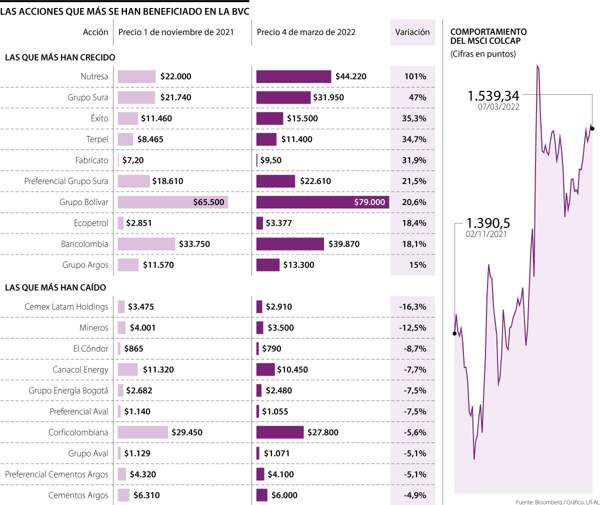 Cinco ejes centrales influirían en el movimiento de la BVC: las elecciones legislativas y presidenciales; la presentación de una nueva ronda de OPA por Sura y Nutresa; los resultados financieros de los emisores; el desarrollo de las tensiones internacionales por cuenta de la invasión rusa a Ucrania; y los altos precios del petróleo.