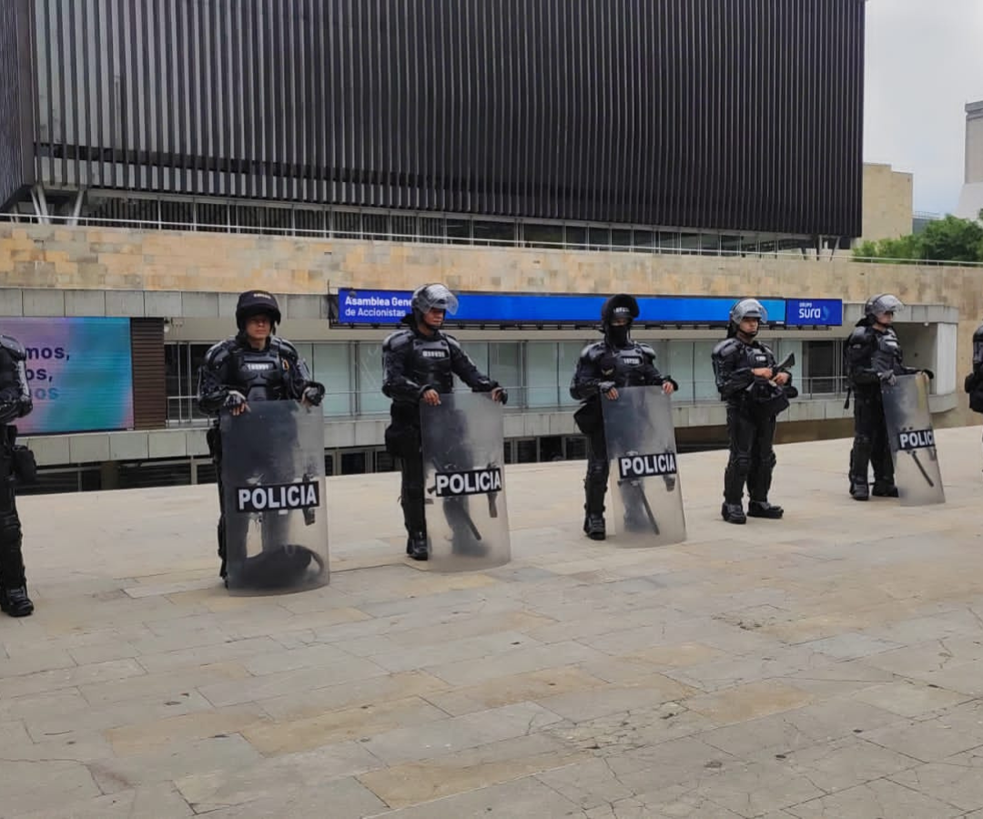 Ni siquiera en las empresas en donde las altas directivas tienen las relaciones más tensas con sus accionistas, o incluso con los sindicatos, es común ver al Esmad de la Policía Nacional asistiendo a las asambleas anuales. Esa fue una de las fotografías que dejó la maratónica sesión de reuniones que realizó el Grupo Sura ayer y que marcó un nuevo episodio en las tensiones con la familia Gilinski.