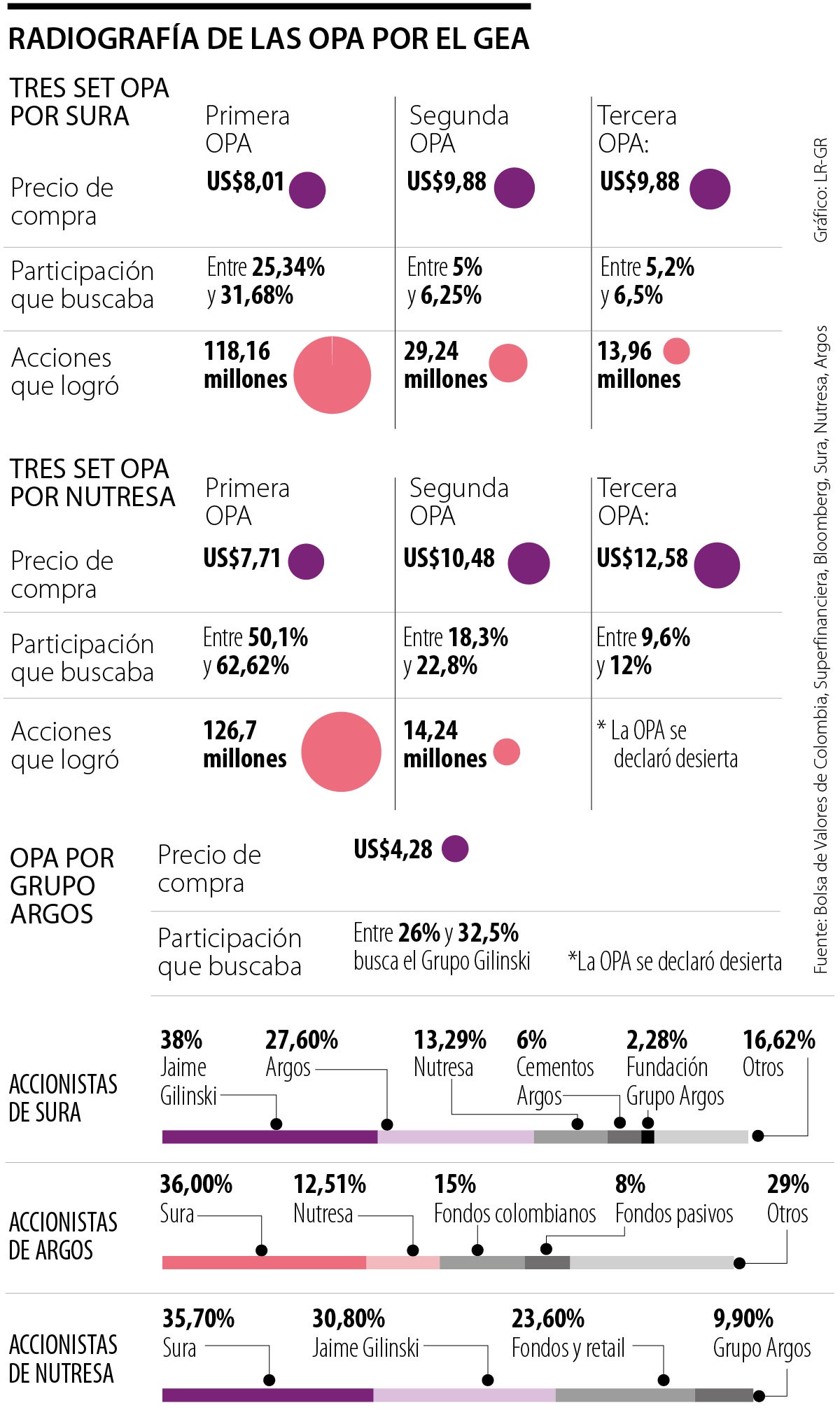 Tras nueve meses, siete Ofertas Públicas de Adquisición (OPA) y una inversión cercana a los $10 billones, Jaime Gilinski no consiguió el control de las empresas del Grupo Empresarial Antioqueño (GEA), pero sí logró poder económico y político dentro del mismo, en las juntas directivas.
