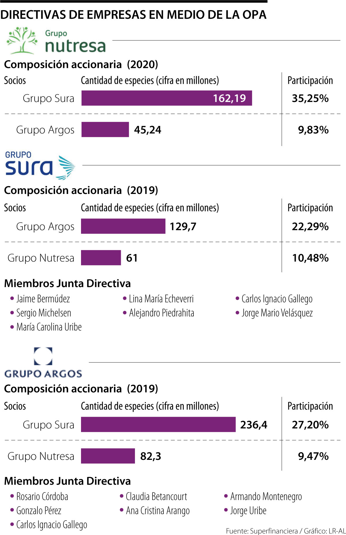 Los grupos Argos y Sura se encuentran en una carrera contrarreloj para convencer a los accionistas minoritarios del Grupo Nutresa de que no vendan su participación en la compañía. Por reglamento, tienen hasta el 15 de diciembre para presentar una eventual Oferta Pública de Adquisición (OPA) competitiva y hasta el 17 de diciembre para determinar quién vende y quién no.