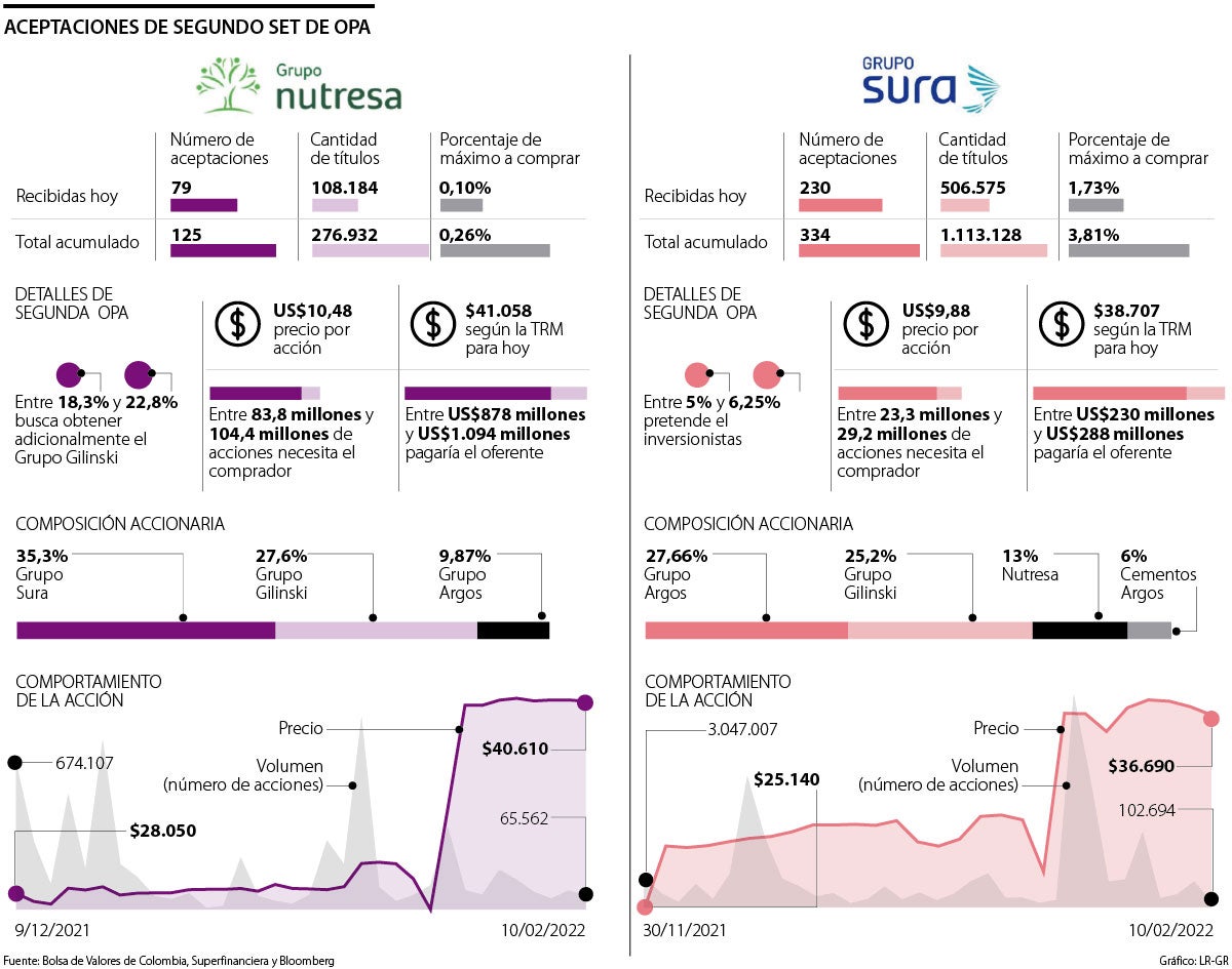En segunda OPA ya lleva 3,8% del máximo que busca en la compañía de seguros. En nutresa, el umbral de venta está abajo de 1%