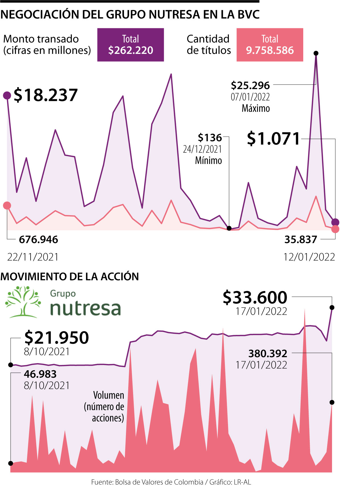 Mientras una gran cantidad de accionistas se decidían a aceptar la OPA sobre Nutresa, presentada por el Grupo Gilinski, muchos acudieron al mercado público entre el 29 de noviembre y el 12 de enero para vender o comprar acciones. En total, a través de la Bolsa de Valores de Colombia (BVC) se transaron $262.220 millones y 9,78 millones de especies.