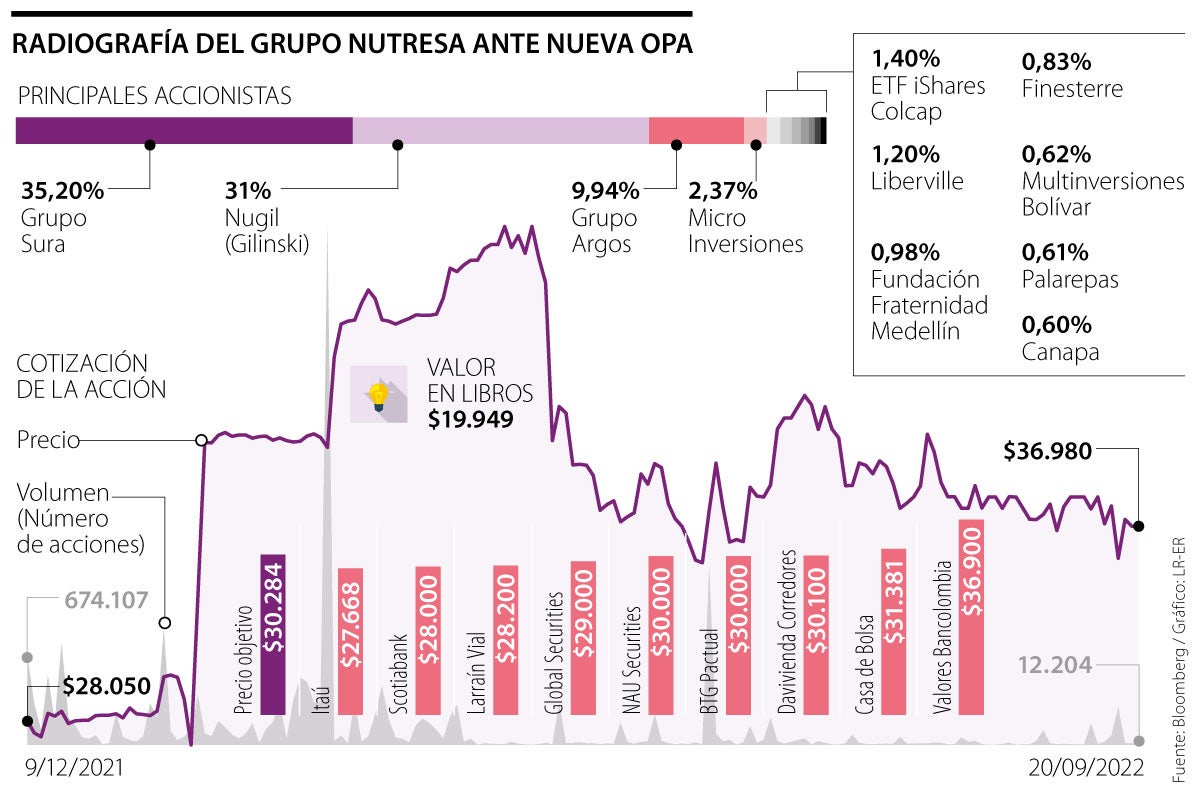 “Entre 7% y 8% de esta compañía está en antioqueños como la familia Palacio, que sin importar el precio, lo que les interesa es mantener algo de propiedad dentro de Nutresa”, dijo Valeria Álvarez, analista de Itaú Comisionista de Bolsa.