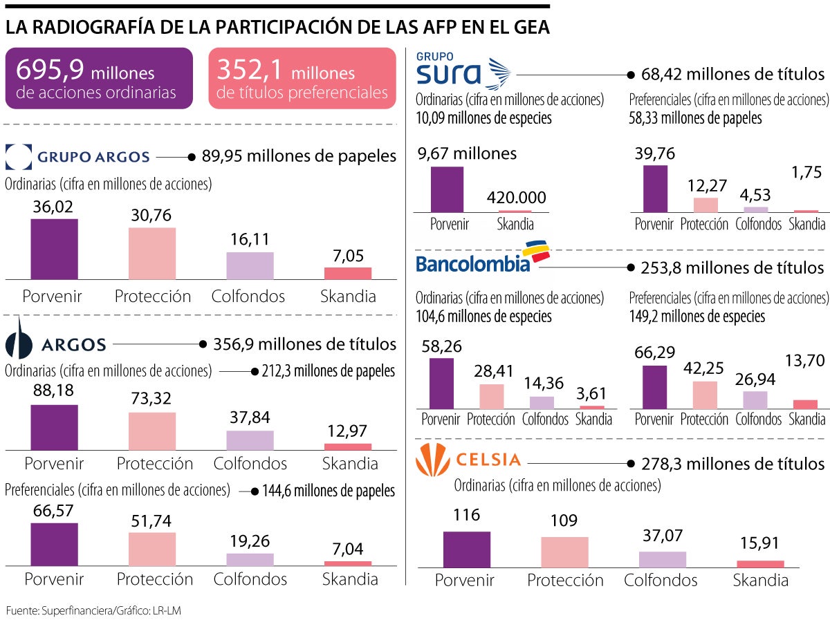 Sin embargo, teniendo en cuenta que una oferta de adquisición solo se presenta por las especies comunes, donde más tendrían injerencia las AFP sería en Celsia, filial del Grupo Argos.