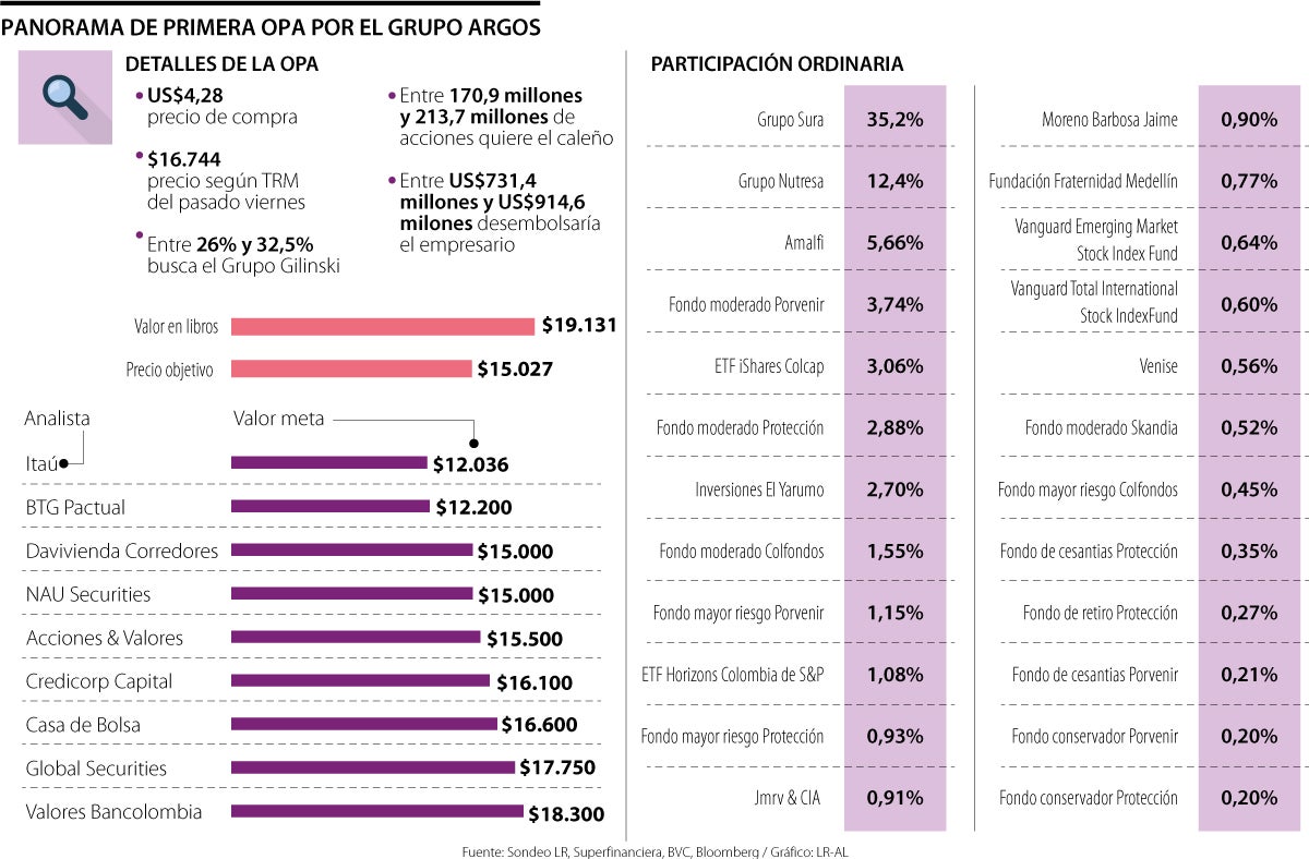 Según Wilson Tovar, gerente de Investigaciones Económicas en Acciones & Valores, “hay mucha liquidez para comprar grandes cantidades de acciones. Incluso, el mercado podría estar discutiendo la llegada de una oferta por Bancolombia. Sin embargo, esta nueva OPA es una especie de termómetro para saber qué tanto éxito podría tener si avanza en su idea. Si la respuesta del mercado le hace sentido, vendría una segunda oferta a un mejor precio”.