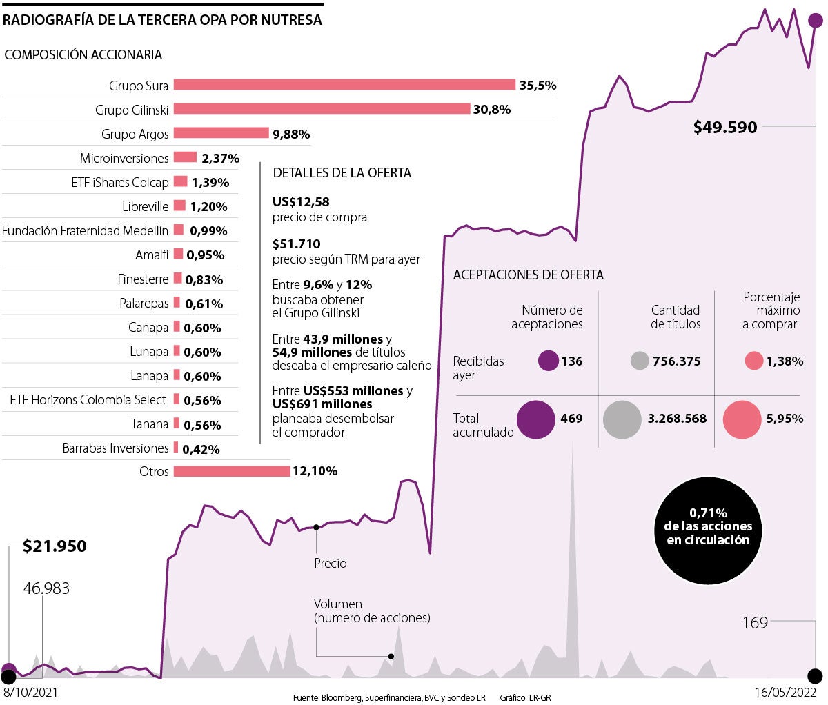 Sura encabeza los principales socios de la compañía con 35%. En diciembre, el grupo paisa anunció la llegada de una OPA acordada