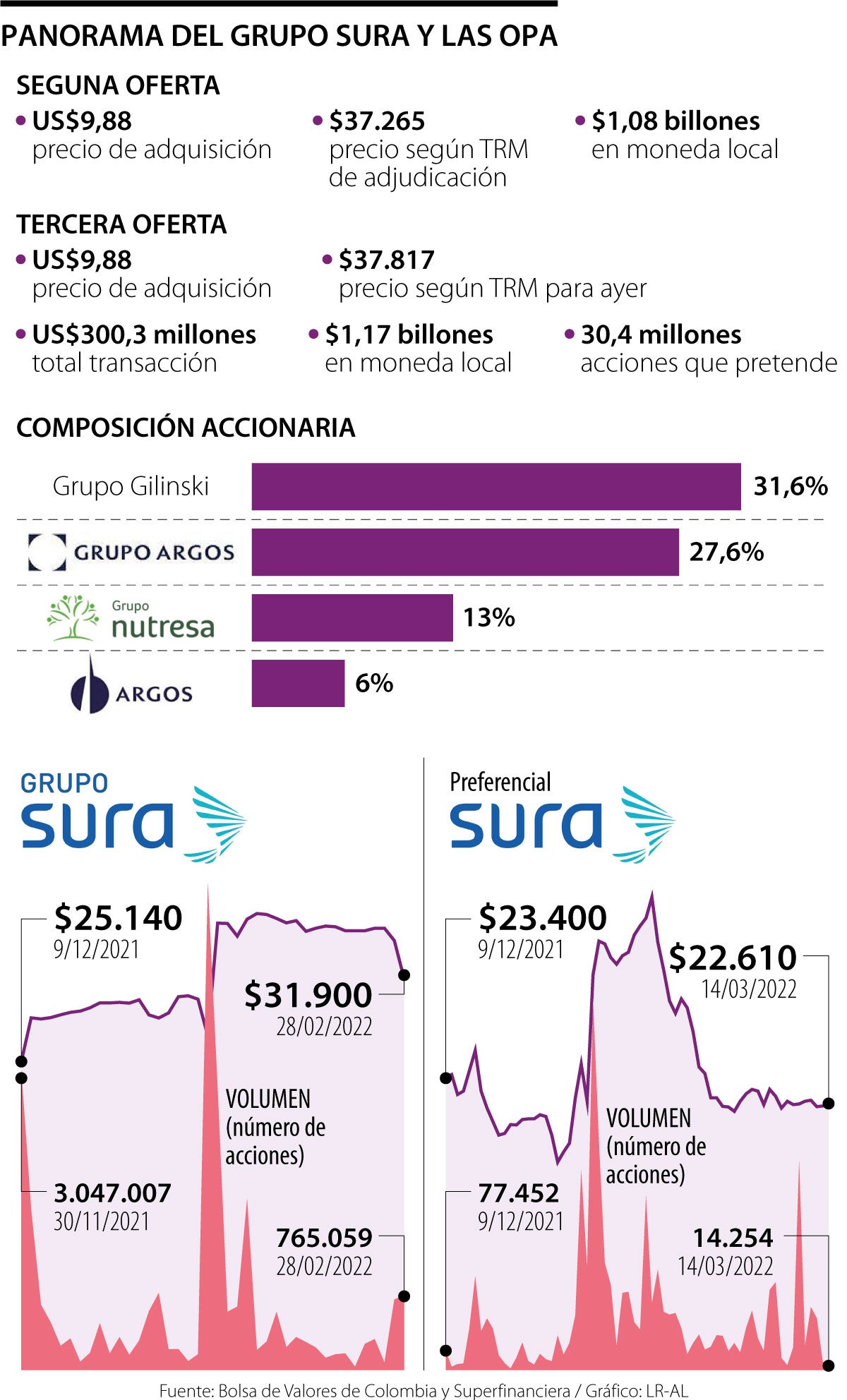 Hasta el momento, Jaime Gilinski ha desembolsado $4,81 billones para quedarse con 145,05 millones de acciones ordinarias del Grupo Sura, cifra que equivale a 31,6% de la compañía. De este monto, el empresario caleño recuperará $113.720 millones de entrada, debido al dinero que recibirá por cuenta del pago de dividendos que realizará el emisor.