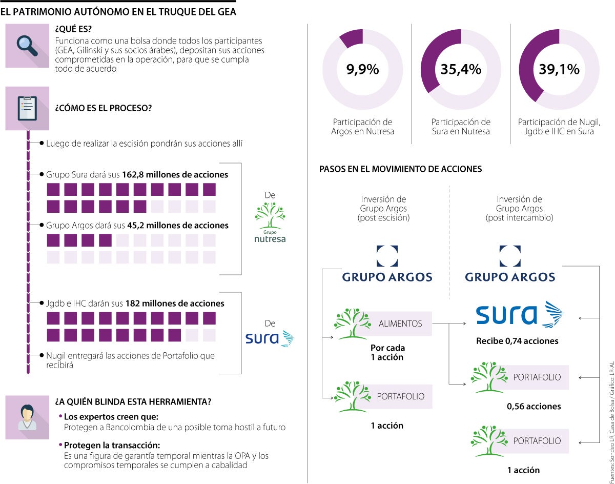 “Como es una operación de compra hostil y no quieren que nadie se atraviese en el camino, crearán un patrimonio autónomo donde llegarán acciones con derechos económicos, únicamente, haciendo separación temporal para que no haya nuevas compras hostiles. Es un mecanismo de protección de la transacción”, explicó el analista Diego Palencia, y vicepresidente de investigaciones de Solidus Capital.