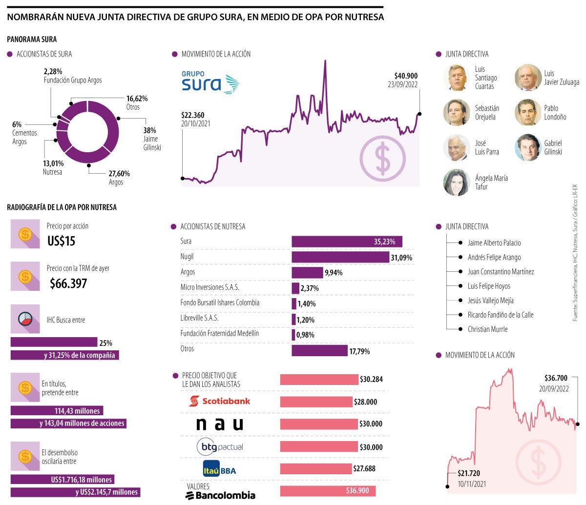 La convocatoria a la reunión extraordinaria se da en medio de la OPA presentada por IHC para adquirir entre 25% y 31,25% de Grupo Nutresa. De hecho, si la Superfinanciera aprueba la oferta, los socios de Sura deberán reunirse para decidir cuáles miembros de la Junta no tienen conflictos de interés y, así, puedan decidir si vender o no la participación que tienen en la compañía objeto de compra. Así, la nueva Junta sería la encargada de dicha decisión, recordando que en las OPA de Gilinski se optó por no vender.