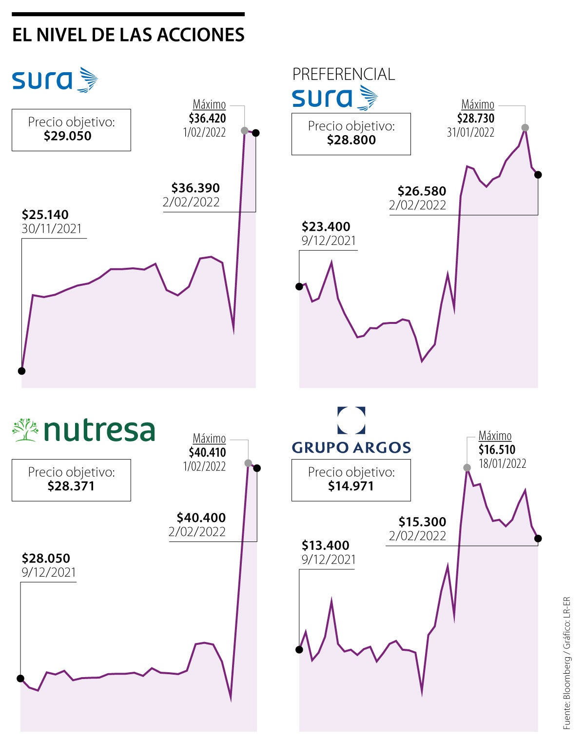 Dicho comportamiento llevó a que los títulos de ambos emisores se terminaran de posicionar muy por encima del precio objetivo de los analistas del mercado, dato que es recopilado por la plataforma Bloomberg.