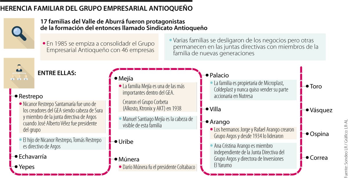 Después se consolidaría el GEA con el enroque accionario entre los grupos Argos, Nutresa (en ese momento Nacional de Chocolates) y Sura, y varios de los apellidos de estas familias seguirían estando en las juntas directivas de las empresas en generaciones posteriores.