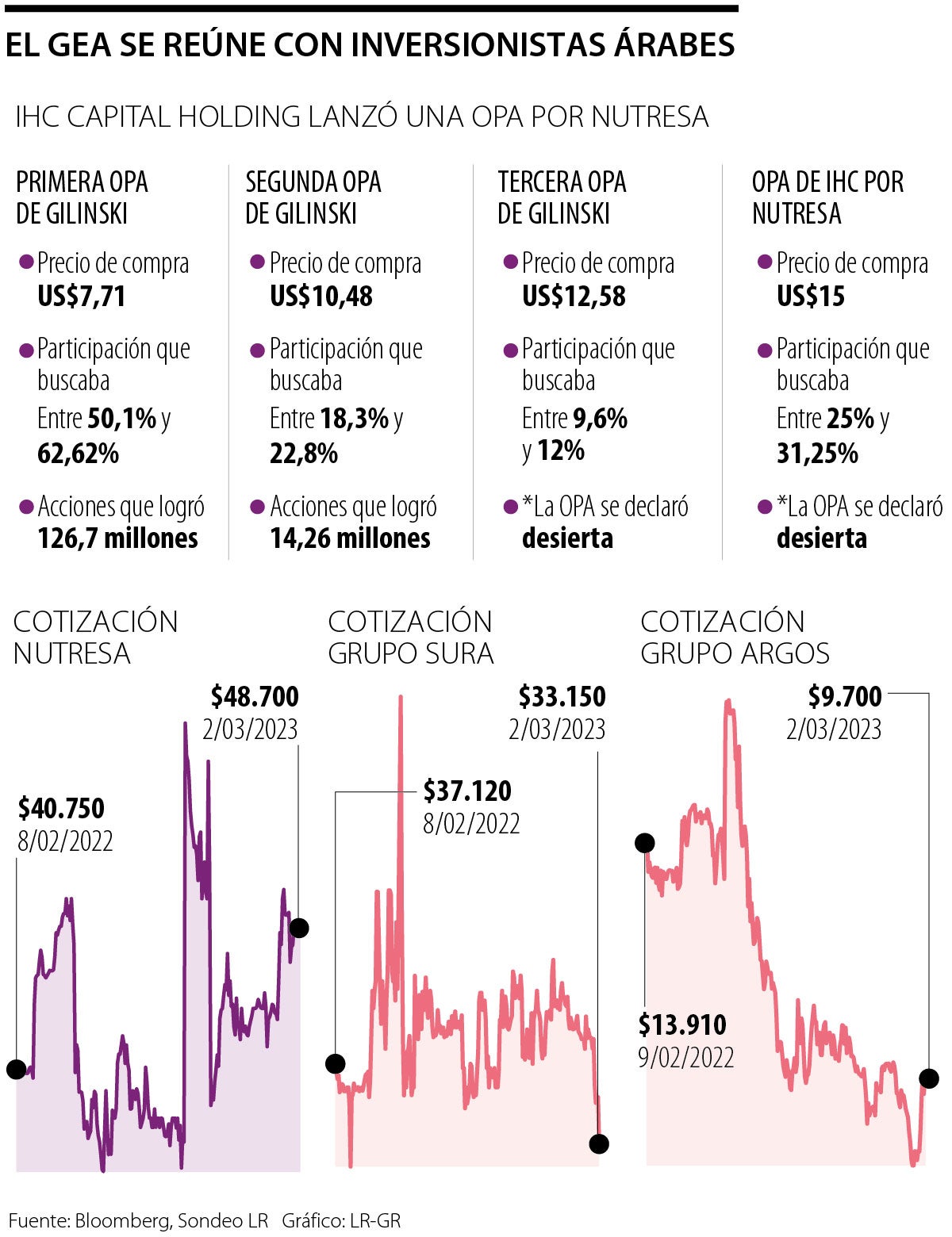 El año pasado, el grupo árabe anunció una oferta con la que apuntaba a una participación de entre 25% y 31,25% de Nutresa, a US$15 por cada acción en circulación. No obstante, tras no alcanzar el mínimo que pretendía, la Bolsa de Valores de Colombia la declaró desierta.