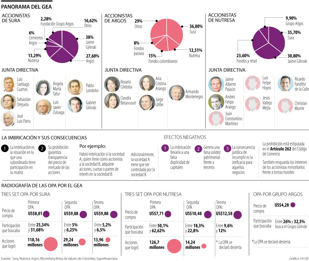 Cabe mencionar que los presidentes de los tres grupos, Carlos Gallego (Nutresa), Gonzalo Pérez (Sura) y Jorge Mario Velásquez (Argos) hacían parte de las Juntas Directivas de las compañías, de manera cruzada, hasta que renunciaron en junio de este año.