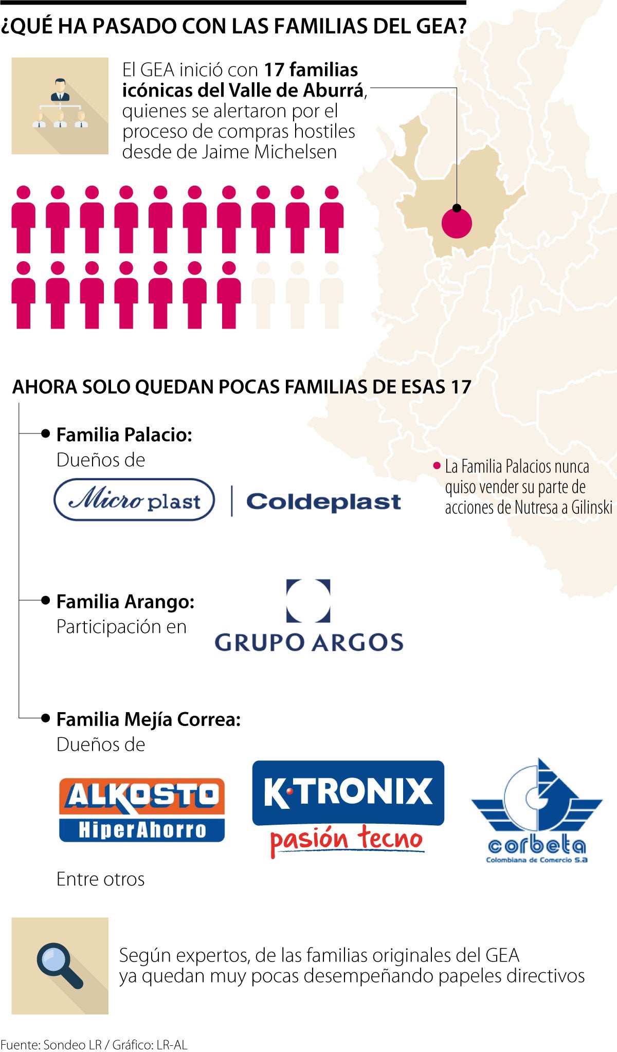 Apellidos de la región como los Restrepo, Echavarría, Yepes, Correa, Uribe, Múnera, Palacios, Villa, Arango, Toro, y muchas otras fueron protagonistas del GEA. Sin embargo, varias se desligaron con el tiempo del sector empresarial, mientras que unos pocos permanecen en estas organizaciones en segunda, tercera o cuarta generación a través de sociedades y mecanismos de inversión.