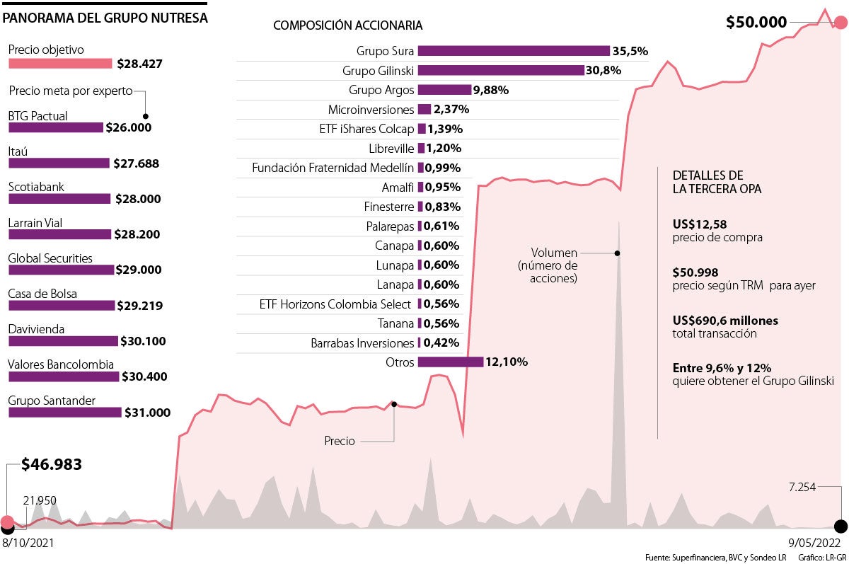 Sin embargo, de convencer a los participantes mencionados anteriormente, Jaime Gilinski conseguiría sumar a su portafolio 14,05% a lo que tiene actualmente, pasando de tener 30,8% a 44,8%. Con estos números, el oferente se posicionaría, al igual que en Inversiones Suramericana, como el socio más grande de la multilatina de alimentos.