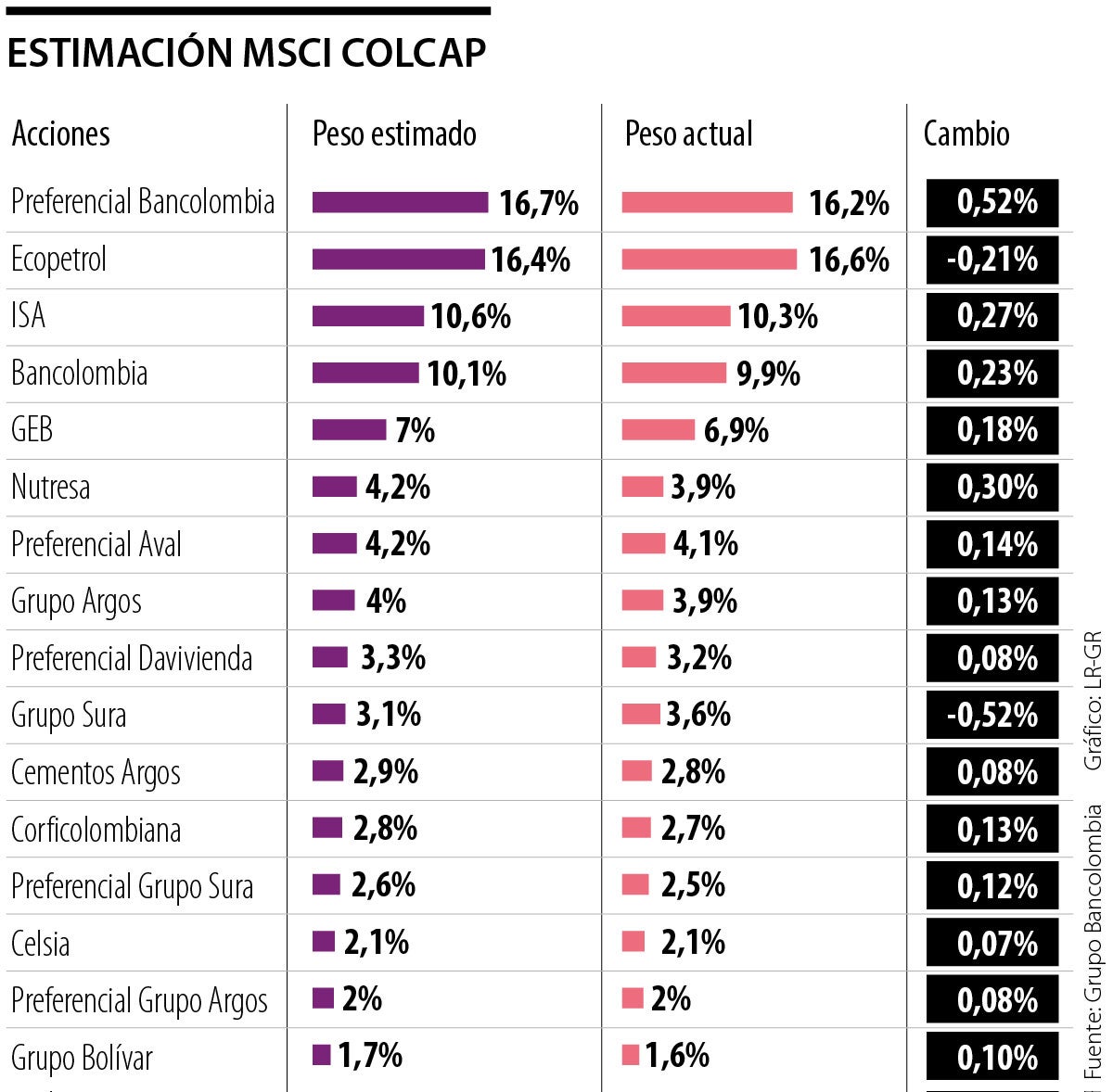 “Aun así, este comportamiento también dependerá de las movidas que haga el management. No veo tan viable una salida del Msci Colcap a futuro debido a la nueva tracción de emisores”, añadió la experta.