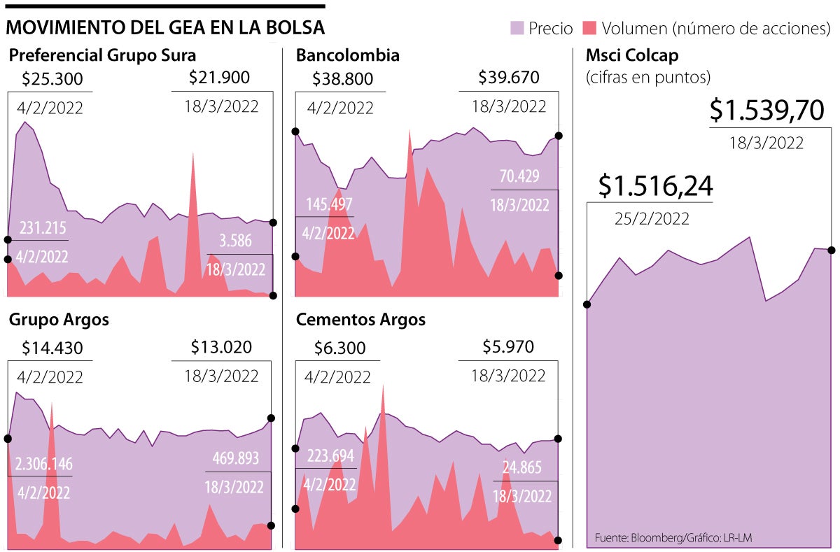 Evidencia de ello es que, desde que se presentó una tercera solicitud de OPA por los mismos dos emisores, las acciones del Grupo Empresarial Antioqueño (GEA) han comenzado a descender, hecho que contrasta con lo visto a lo largo de las dos primeras ofertas.