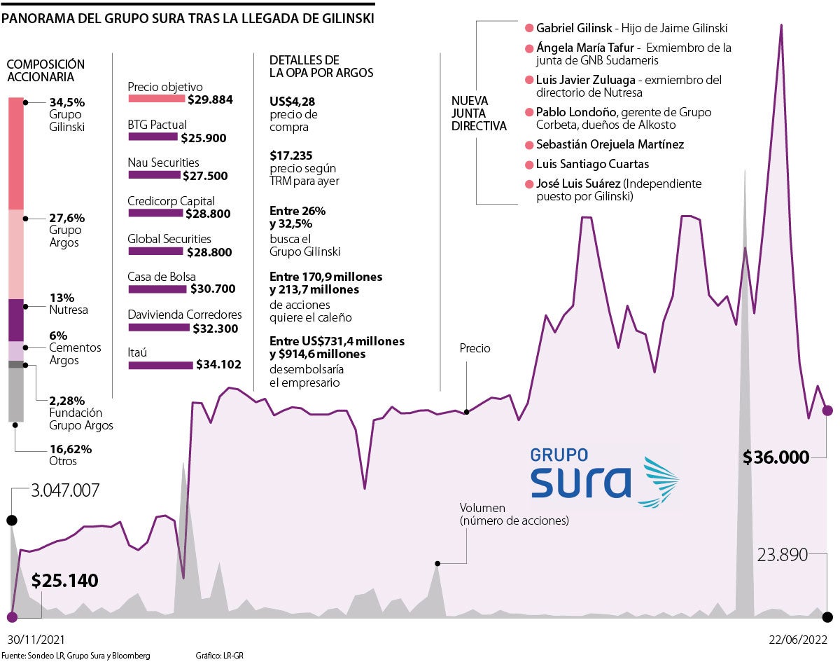 Avanza una semana decisiva para el Grupo Empresarial Antioqueño (GEA). Ayer fue elegida la nueva Junta Directiva de Grupo Sura, mientras que hoy se volverán a encontrar los accionistas de la compañía para introducir una reforma a los estatutos sociales y, posiblemente, deliberar en torno a la más reciente OPA presentada por Jaime Gilinski sobre Grupo Argos.